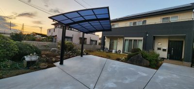 坂戸市T様邸。カーポート設置後土間コンクリート打設工事完了です👷